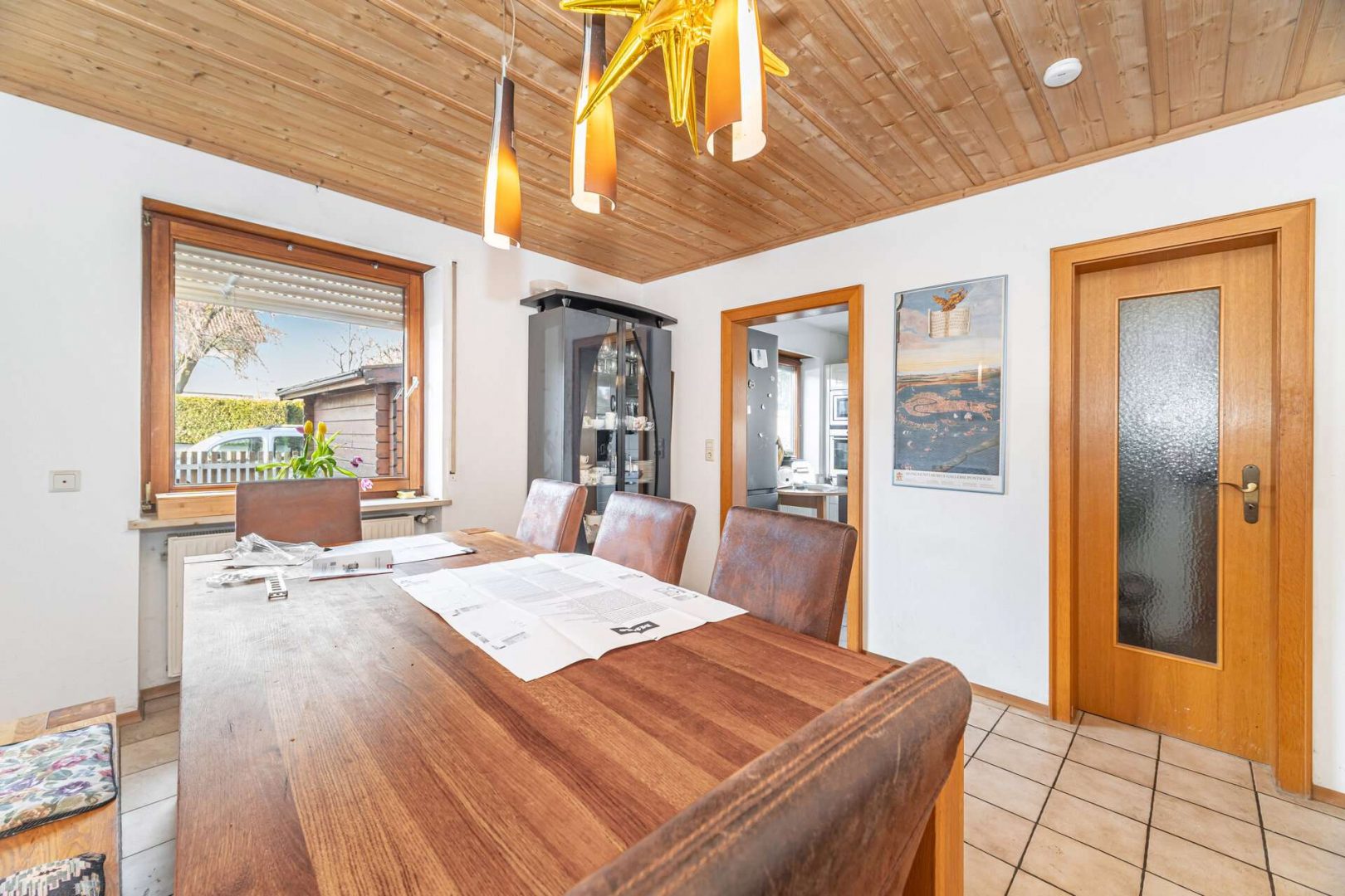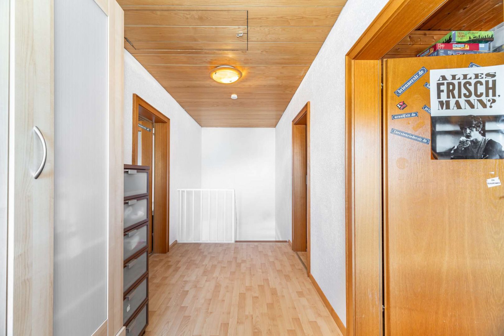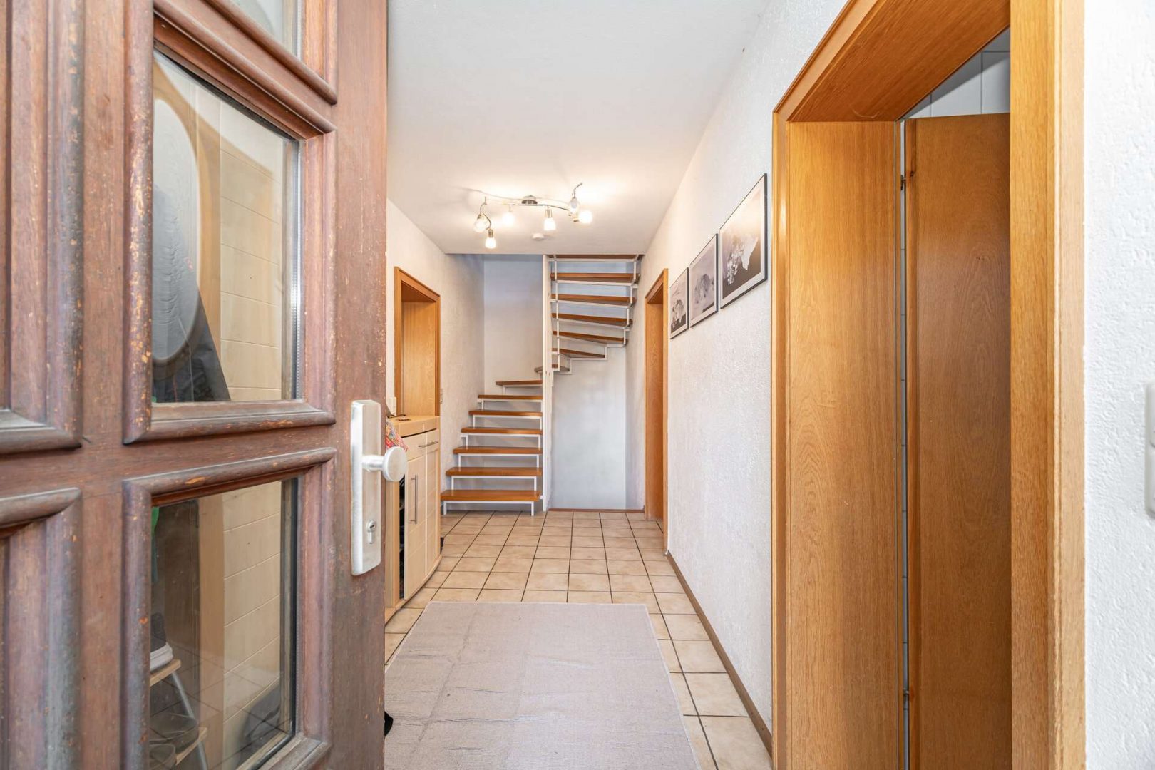 Innenausbau: Holzinnentüren, Holztreppe sowie Holzdeckenverkleidung im Dachgeschoss