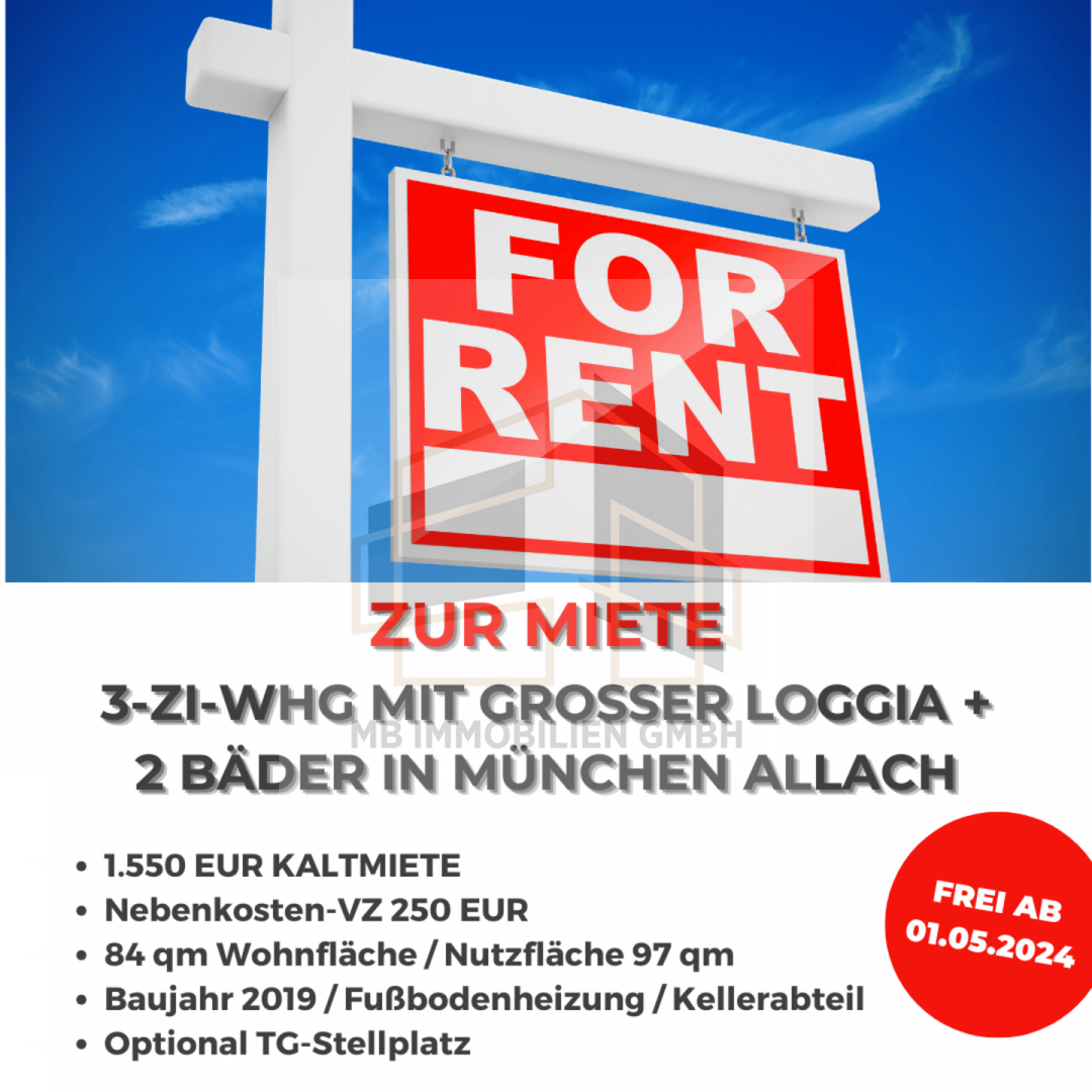 Willkommen in Ihrer neuen 3-Zimmer-Wohnung im begehrten München-ALLACH! Dieses elegante Zuhause befindet sich in einem modernen Neubau aus dem Jahr 2018 und steht ab dem 1. Mai 2024 zur Vermietung bereit. Mit großzügigen 84 Quadratmetern bietet diese Wohnung eine perfekte Kombination aus Komfort und zeitgemäßem Wohnstil.