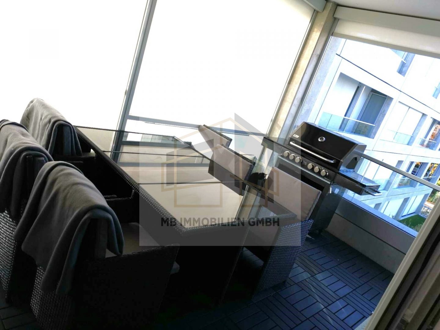 Die Wohnung befindet sich im 2. Stock und ist bequem über einen Aufzug erreichbar. Die Nord-West-Ausrichtung der 24 Quadratmeter großen Loggia ermöglicht entspannte Stunden in der Sonne. Zudem verfügt die Wohnung über zwei Bäder. Eine moderne Einbauküche mit hochwertigen Markengeräten rundet das stilvolle Ambiente ab.