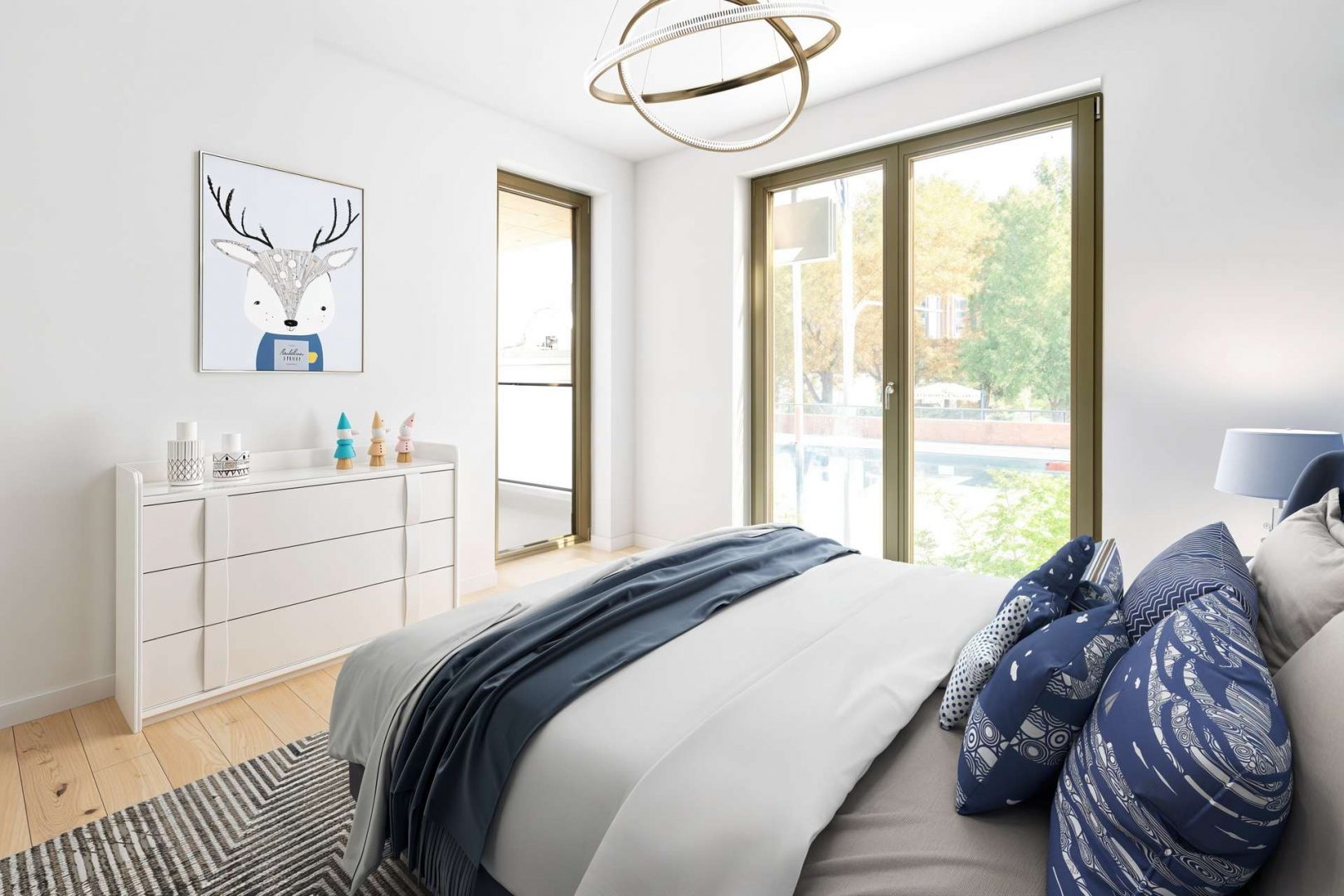 Erleben Sie sonnenverwöhntes Wohnen: Großzügige 3-Zimmer Wohnung mit Süd-Ost-Ausrichtung, perfektem Familienambiente und stilvollen Annehmlichkeiten. Einladender Eingangsbereich mit einem gemütlichen Kinderzimmer, das Platz für Schrank, Bett und Schreibtisch bietet. Das Badezimmer verfügt über eine entspannende Badewanne und einen praktischen Waschmaschinenanschluss, während das Schlafzimmer mit einem geräumigen Ankleidebereich punktet.