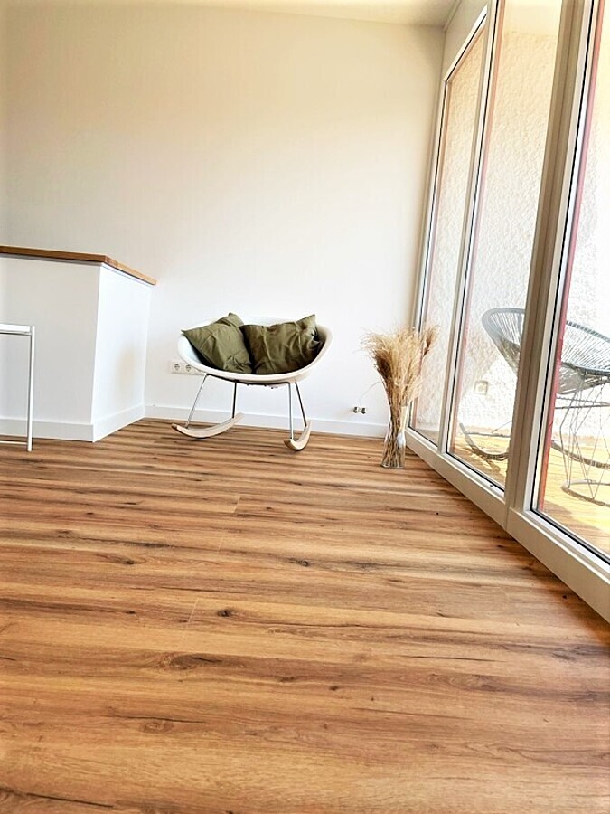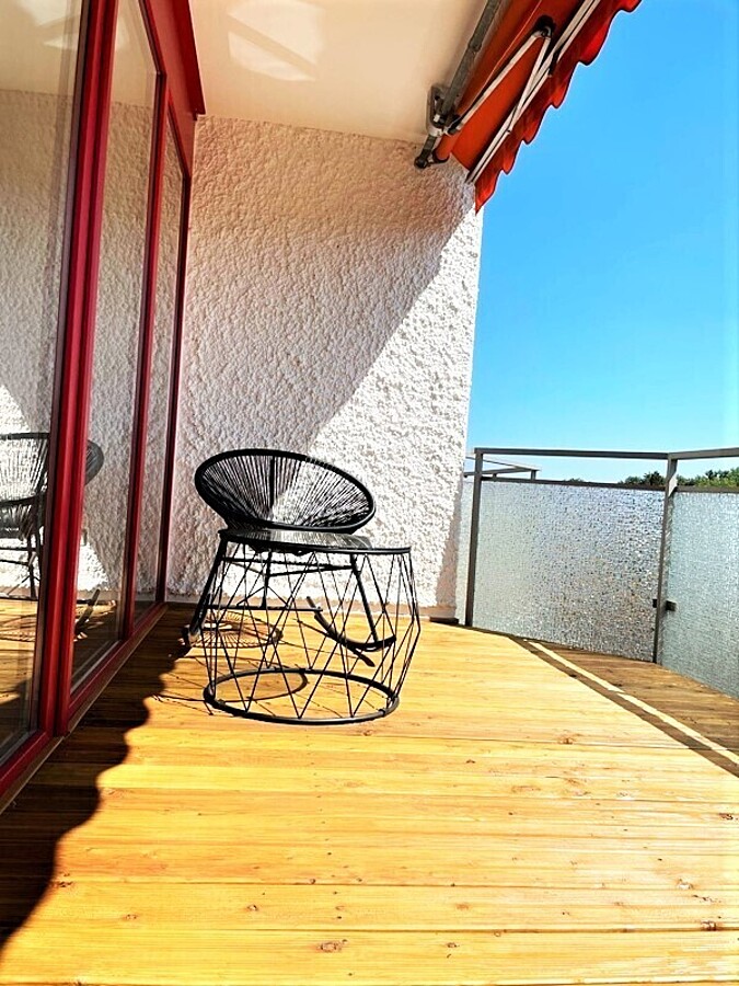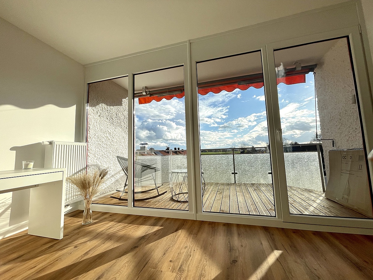 Der große Balkon lädt zum Verweilen ein und gemütliche, sonnige Stunden sind garantiert.