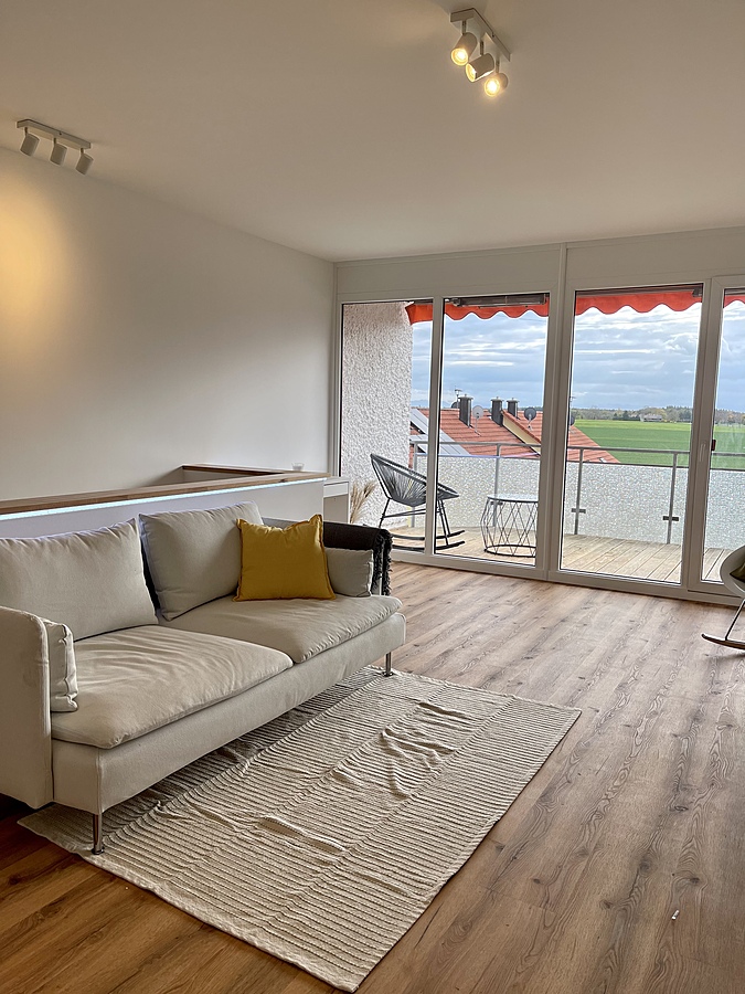 Die Wohnung wurde gerade hochwertig renoviert und besticht durch einen sensationellen Blick (Südseite) auf die Alpen sowie die Nähe zur schönen Altstadt von Landsberg am Lech.