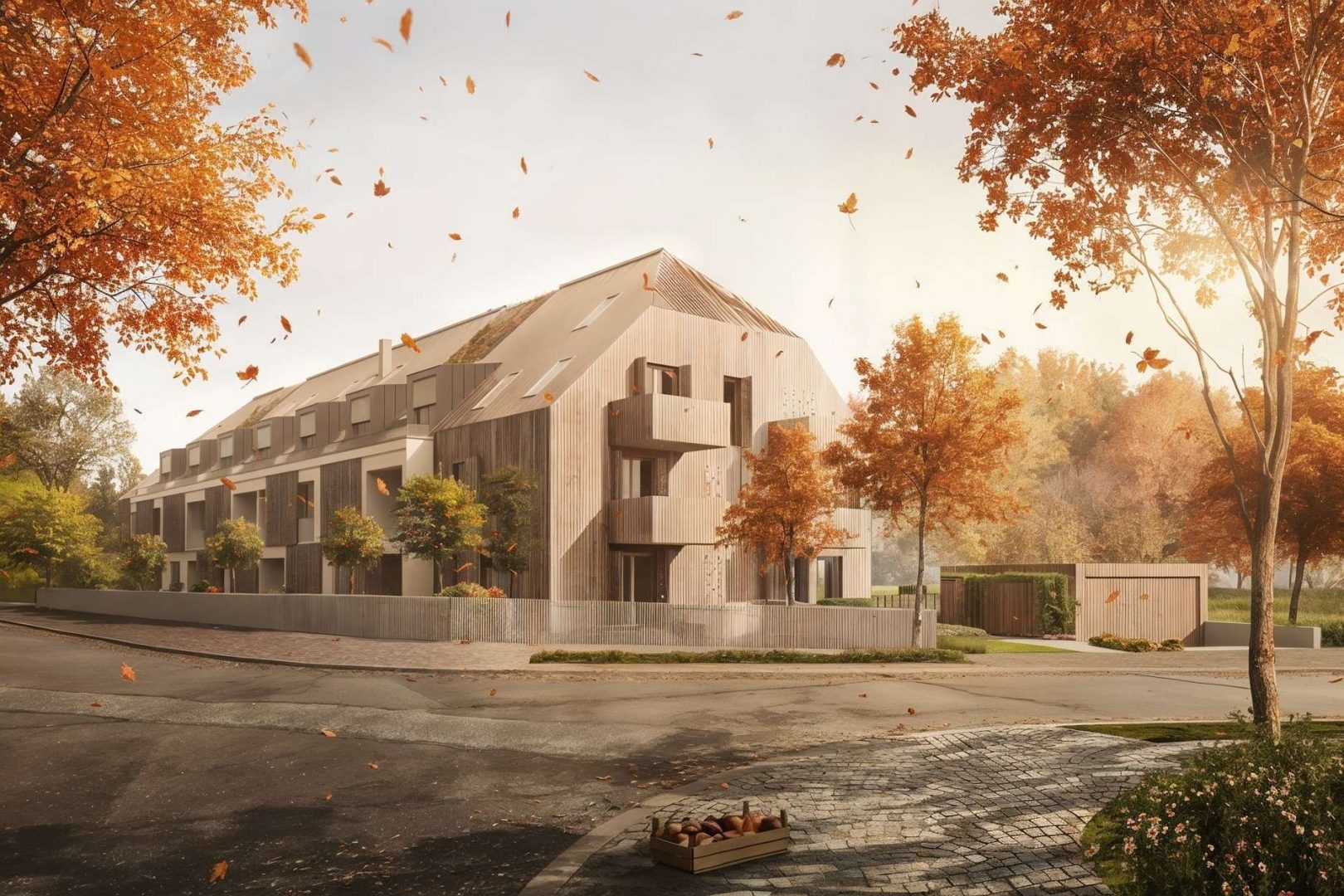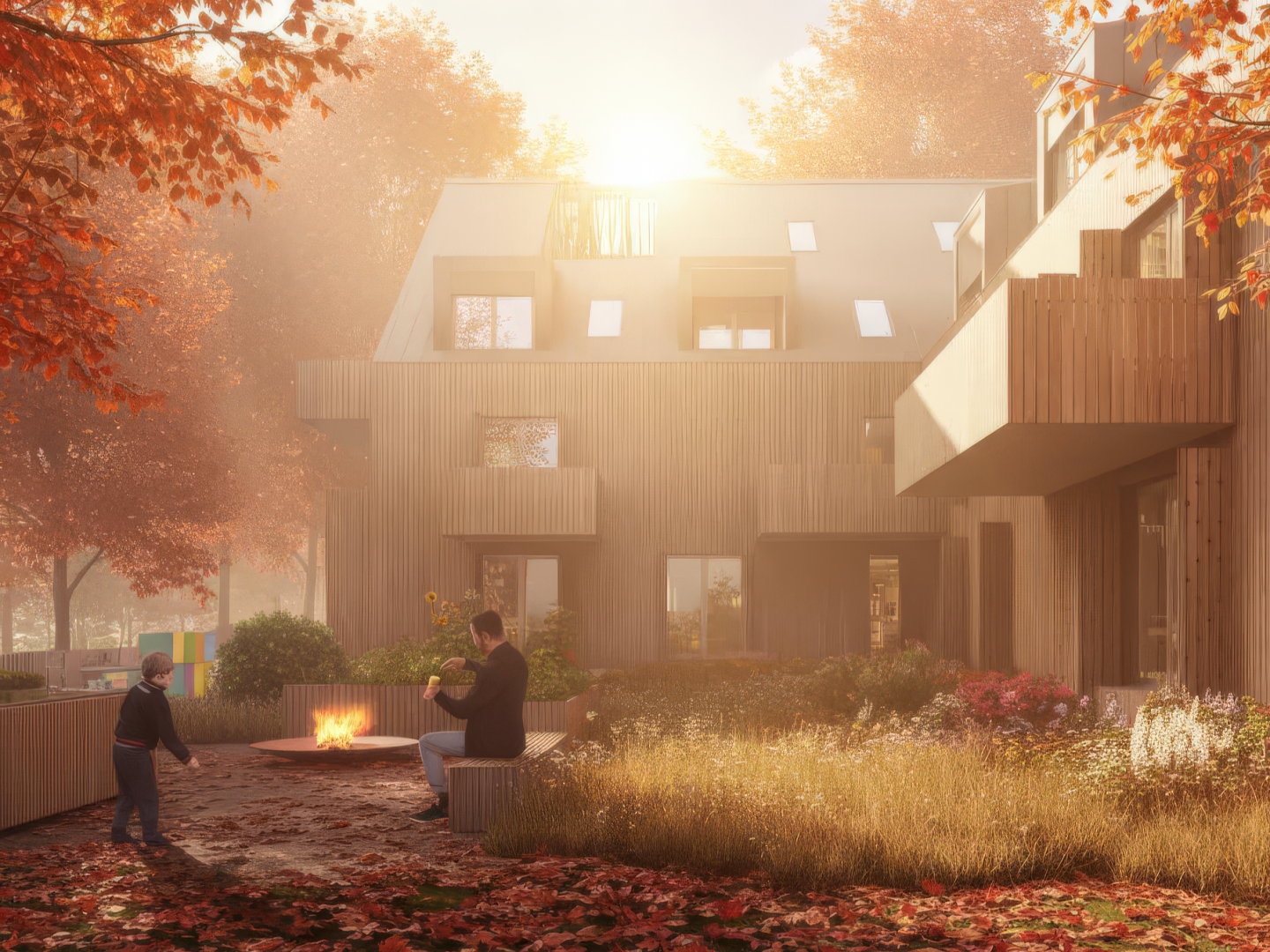 ….und gemütlicher ist das KLEINOD durch seine besondere Architektur. Inspiriert wurde sie von dem gemeinschaftlichen Leben auf einem Bauernhof. Getreu dem Bauernhof-Leben sind viele besondere Details an Haus und Hof entstanden, die das Gebäude einzigartig machen. Spektakuläre Dachterrassen mit Holzbalken, eine gemütliche Holzfassade, wohngesunde Echtblumentapeten und ein schönes Entree zeichnen das Gebäude. Im Garten haben wir für das gemeinschaftliche Leben eine Feuerstelle mit Außenküche und Hochbeete für Groß & Klein. Obst kaufen wird bald überflüssig, denn die vielen Obstbäume und Beerensträucher bieten genug für jeden Bewohner.
