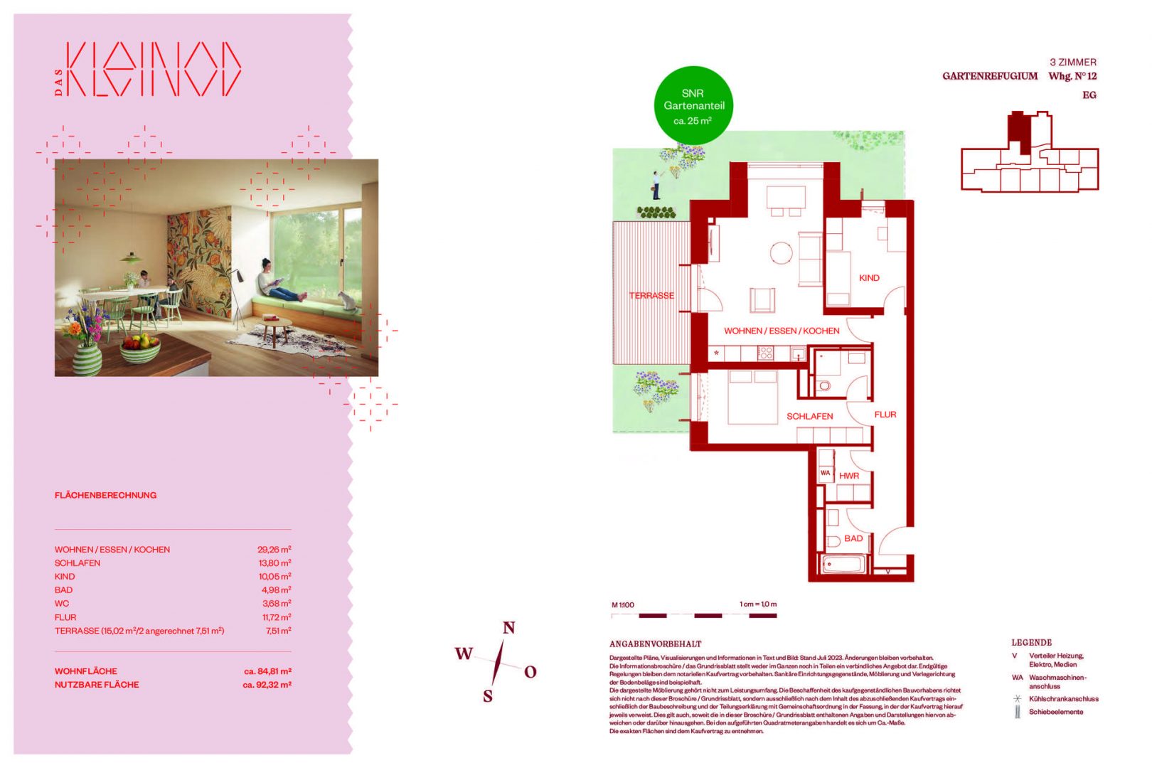 Diese exquisiten 3-Zimmer-Wohnung mit Terrasse und Gartenanteil, bietet einen malerischen Blick nach Westen in den Garten. Die großzügige Terrasse, vom Wohnzimmer aus begehbar, lädt zu entspannten Stunden im Freien ein und bietet einen idyllischen Rückzugsort. Die perfekt integrierte Küchenzeile ermöglicht eine effiziente Nutzung des Raumes, während der großzügige Wohnbereich mit Platz für ein Sofa und eine Media-Ecke Komfort und Stil vereint. Eine Nische mit Gartenblick eignet sich ideal für einen Schreibtisch oder Esstisch, und das Schlafzimmer bietet ausreichend Platz für einen geräumigen Schrank. Das Kinderzimmer ist ebenfalls großzügig geschnitten und bietet Platz für ein Bett, einen Schrank und einen Schreibtisch. Ein praktischer Hauswirtschaftsraum mit Waschmaschinenanschluss und Stauraum für sperrige Haushaltsgeräte sorgt für Ordnung im Haushalt. Zudem gibt es ein Wannenbad und ein Gästebad mit Dusche. Diese Wohnung vereint Komfort, Stil und Funktionalität und bietet einen hohen Lebensstandard für ihre Bewohner.