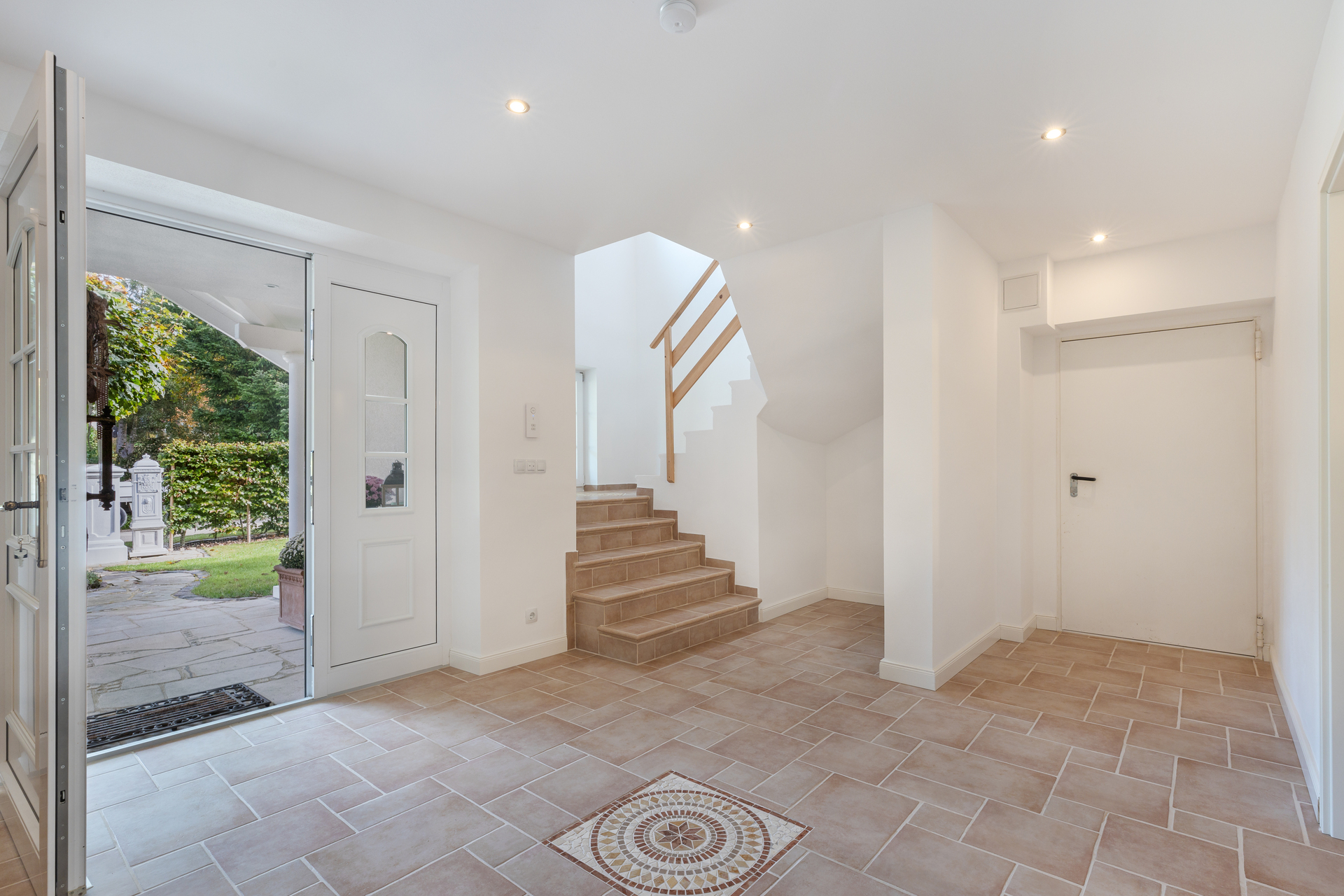 Über eine Treppe im Eingangsbereich ist das Erdgeschoss zu erreichen, das viele