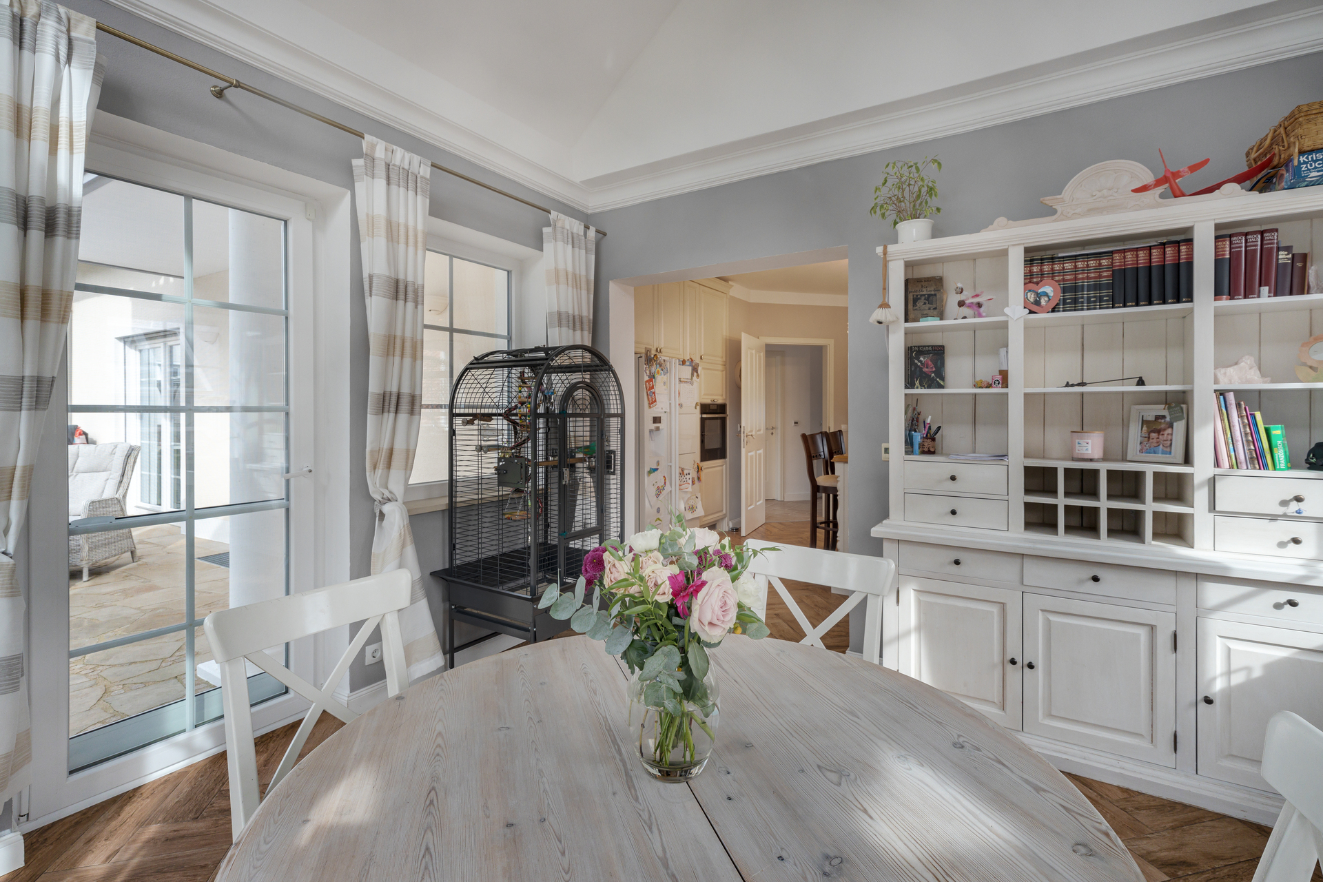 Highlights bereithält. So die lichtdurchflutete Küche im englischen Landhausstil mit