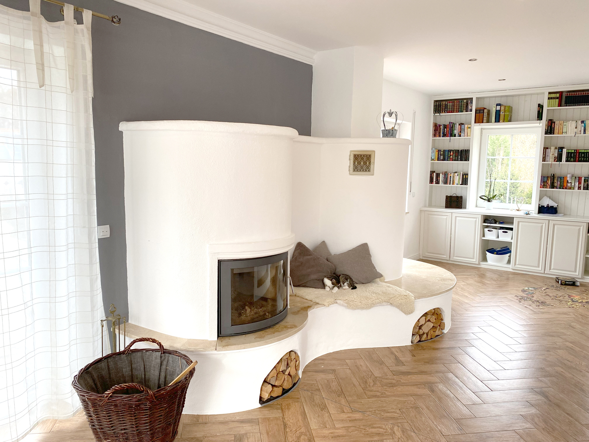 - Schamottierter Heizkaminofen mit beheizter Sitzbank (Fußbodenheizung – eigener Kreis)