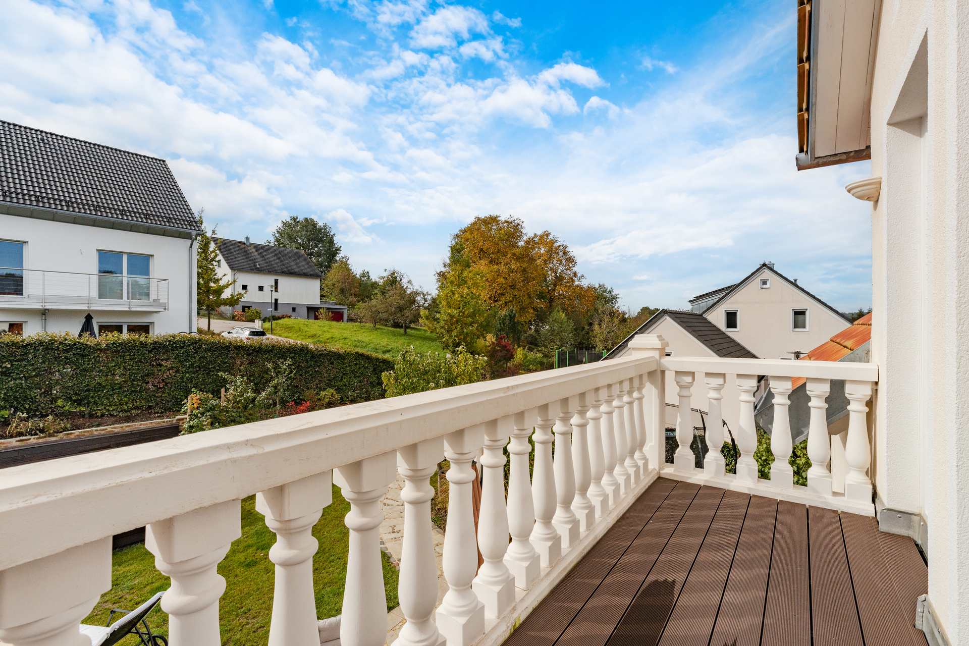 - Balkon im Dachgeschoss mit Blick auf das schön angelegte Grundstück