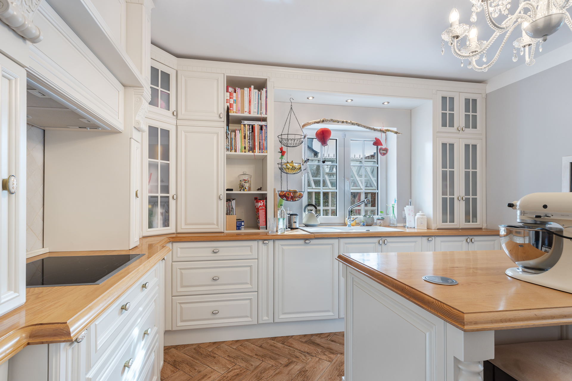 - Schreinerküche im englischen Landhausstil mit Markengeräten