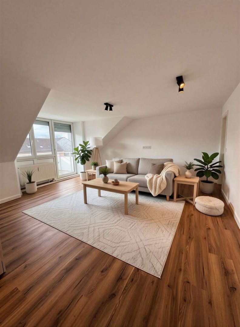 Schon beim Betreten überzeugen großzügige Fensterflächen mit viel Licht, die klare Raumgeometrie mit charmanten Dachschrägen sowie warme Holzoptik-Oberflächen im Zusammenspiel mit ruhigen, hellen Wänden. Der West-Balkon erweitert den Wohnraum nach draußen und schafft einen freundlichen Platz für frische Luft und kleine Auszeiten im Alltag.