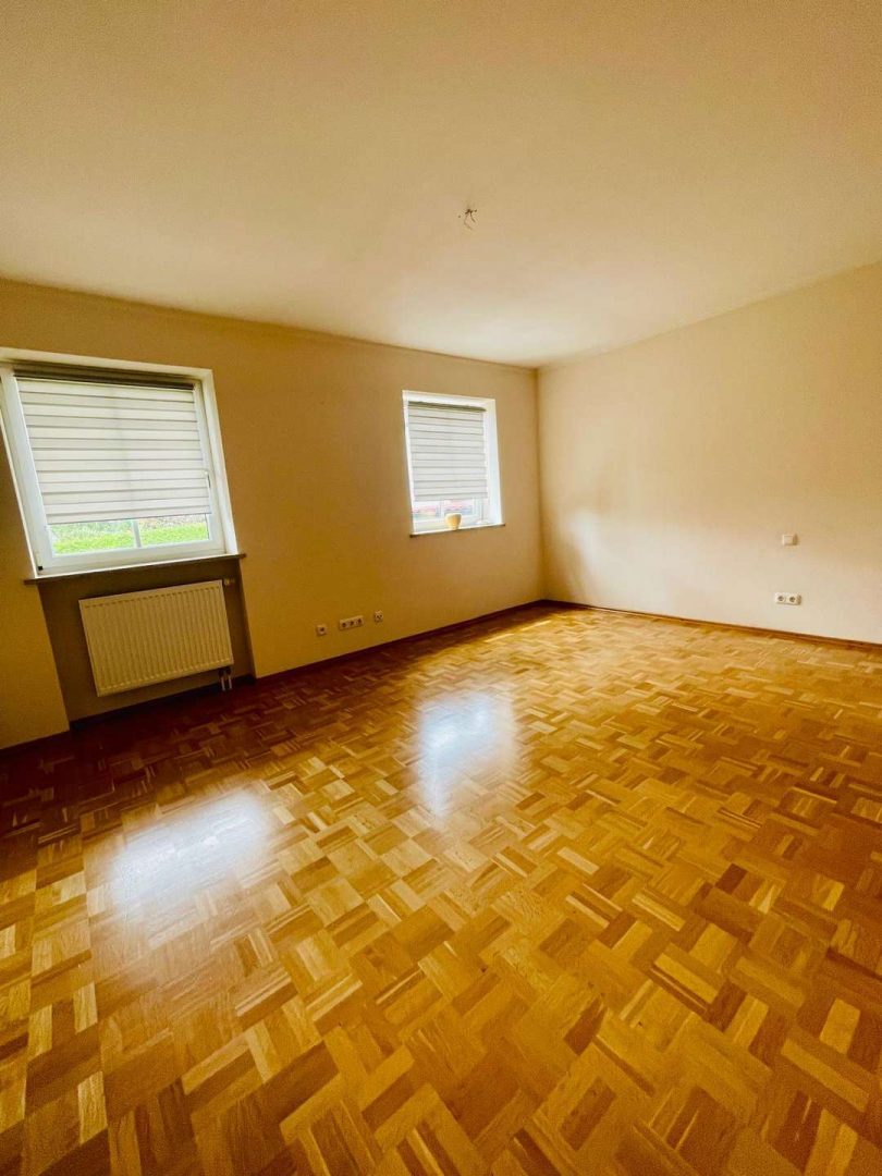 Wohnzimmer: Das großzügige Wohnzimmer besticht durch viele Fenster, dem Zugang zum Balkon und bietet viel Tageslicht. Es eignet sich hervorragend als Wohn- und Essbereich.