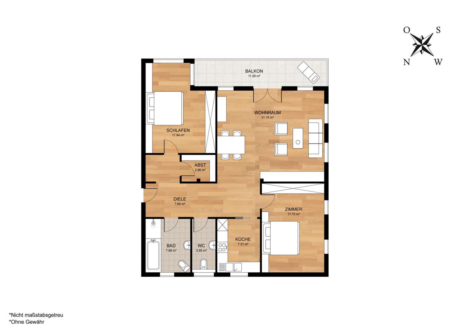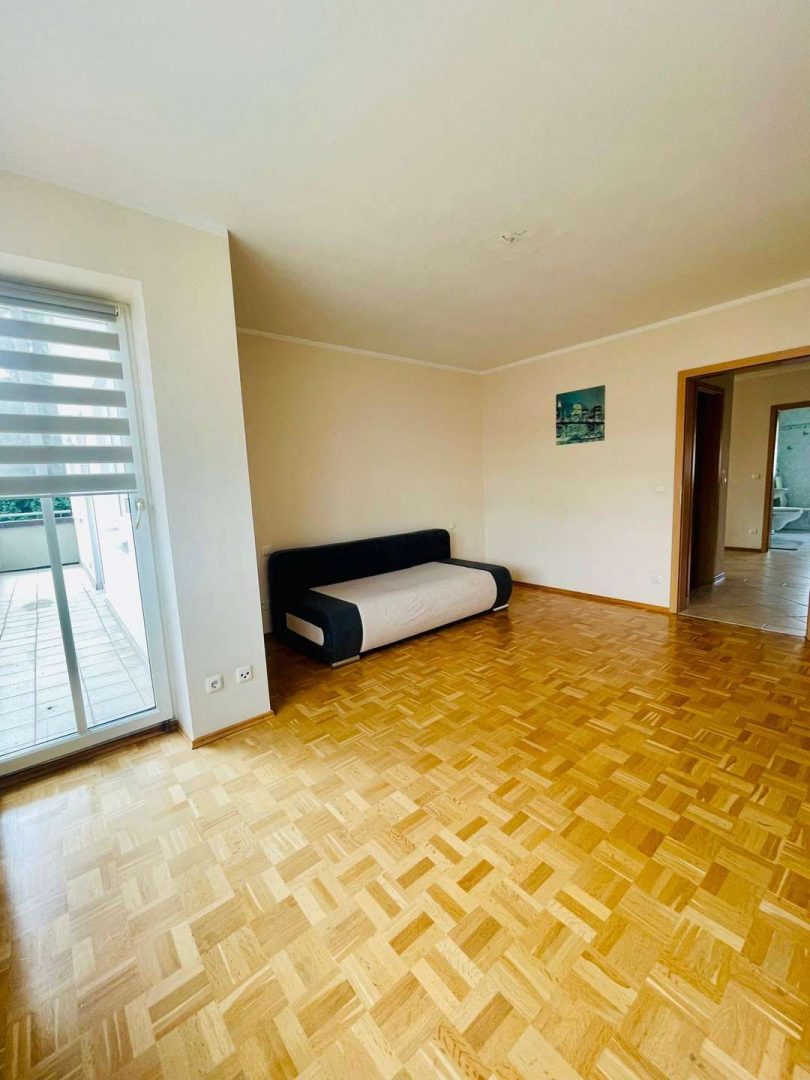 Die Wohnräume sind mit hochwertigem Echtholzparkett ausgestattet, während der Rest der Wohnung mit schönen, hellen Fliesen verlegt ist.