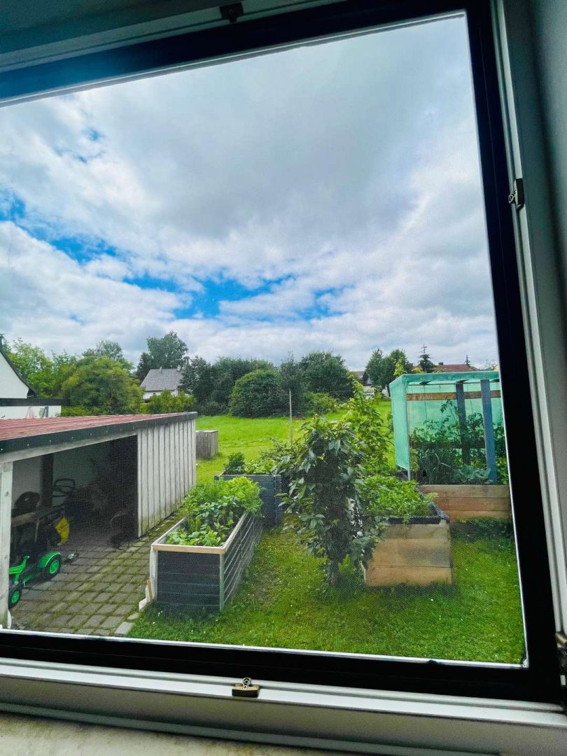 Küche: Die separate Einbauküche bietet einen Blick in die Natur und ist in sehr gutem Zustand. Sie ist im Mietpreis inklusive und verfügt über Herd, Dunstabzug, Backofen, großem Kühlschrank und Gefrierfach.