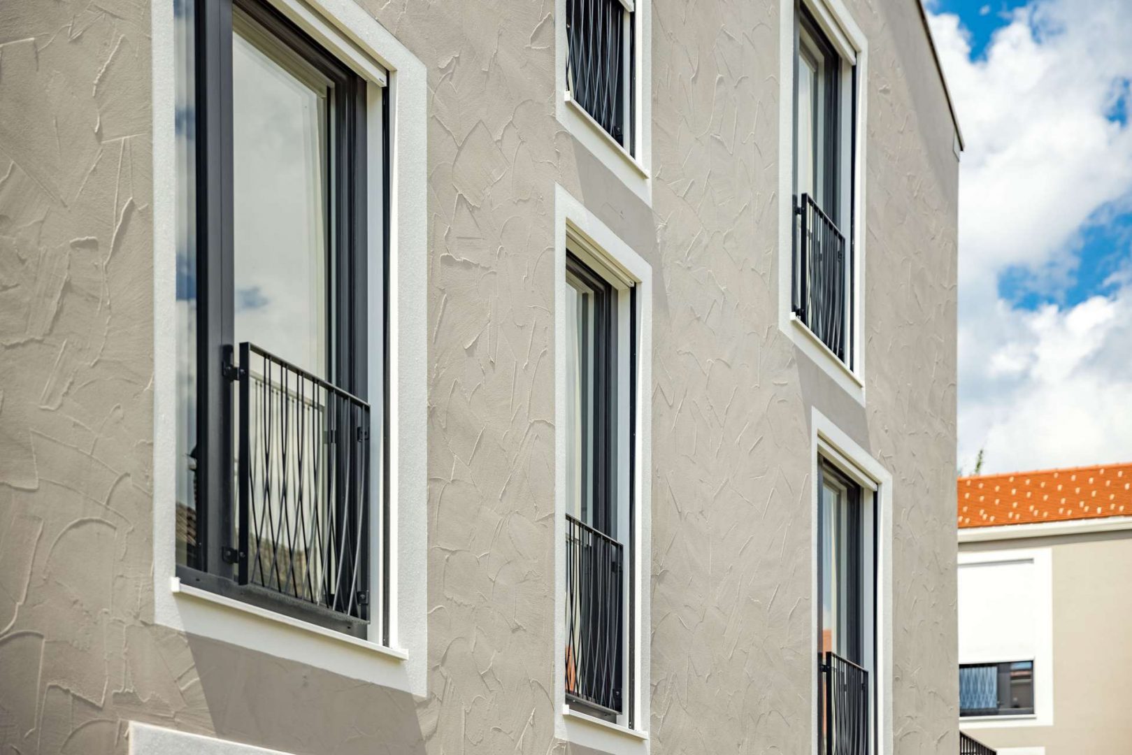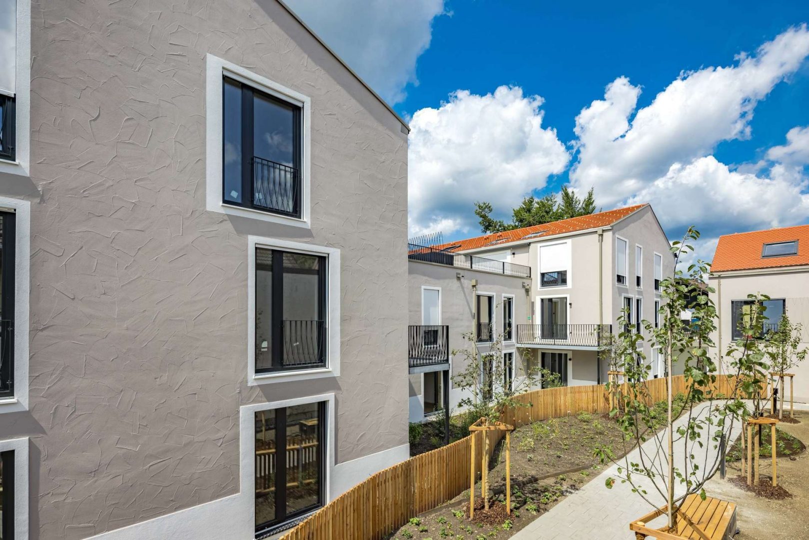 In den Wohnungen sorgt eine Fußbodenheizung für angenehme Wärme und Behaglichkeit. Hochwertige Holzfenster tragen zur Energieeffizienz bei und halten gleichzeitig die laufenden Kosten niedrig. Die stilvollen Außenwandleuchten sorgen für eine einladende und sichere Atmosphäre, die zu gemütlichen Abenden im Freien einlädt.