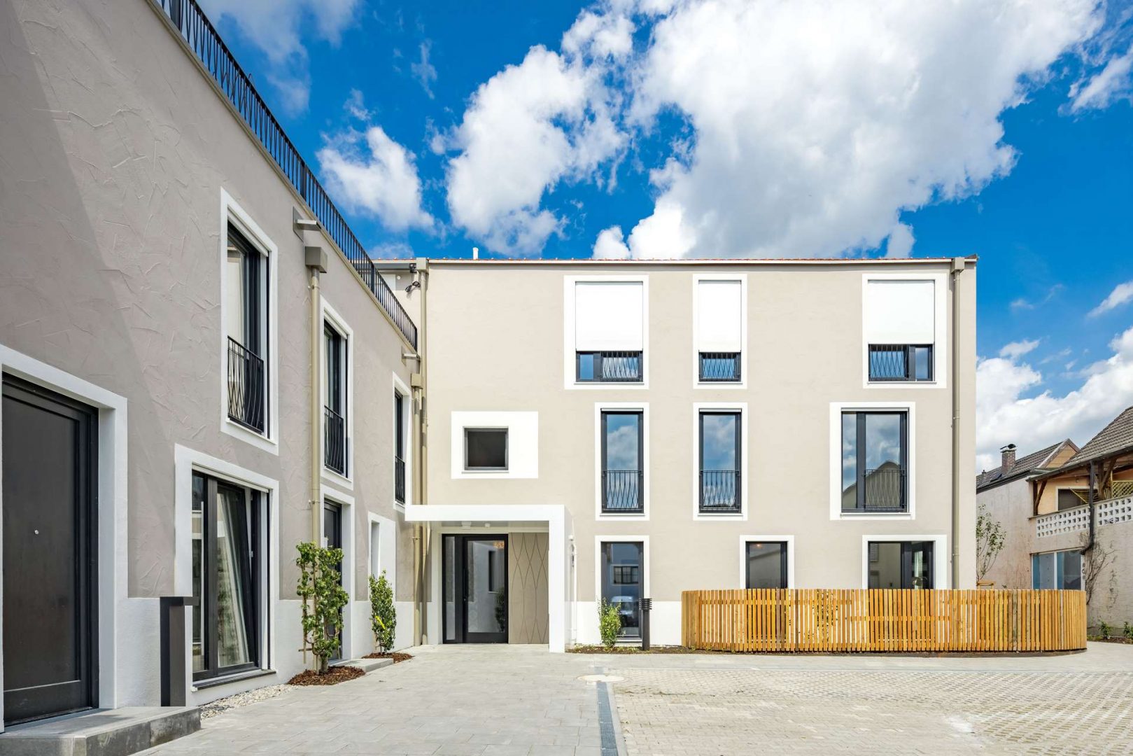 Das S'PLATZL fängt den einzigartigen Charme des historischen Grafinger Marktplatzes ein und bringt ihn in eine zeitgemäße moderne Wohnform. Hier treffen traditionelle Elemente wie Butzengläser, Bauernhausbalkone und handgefertigte Details auf eine hochwertige und beständige Ausstattung.