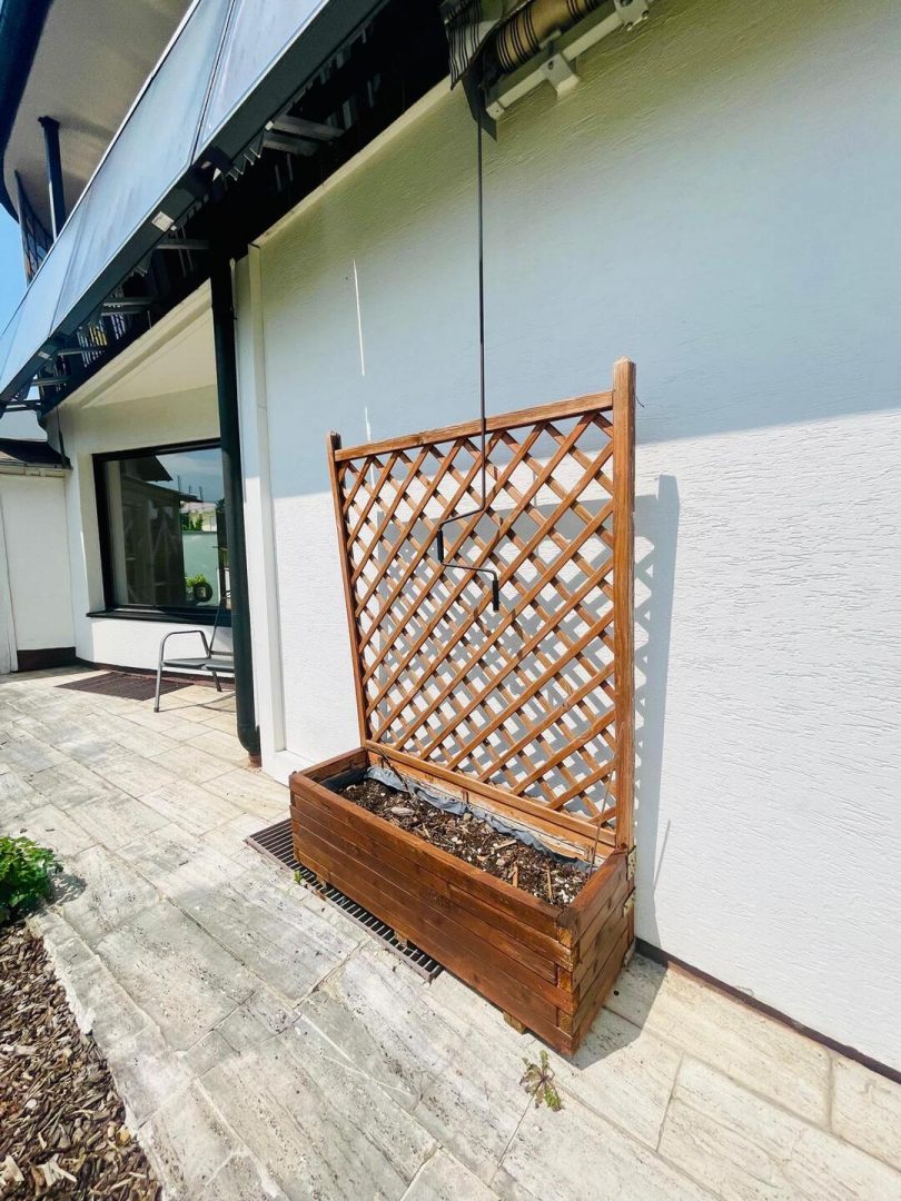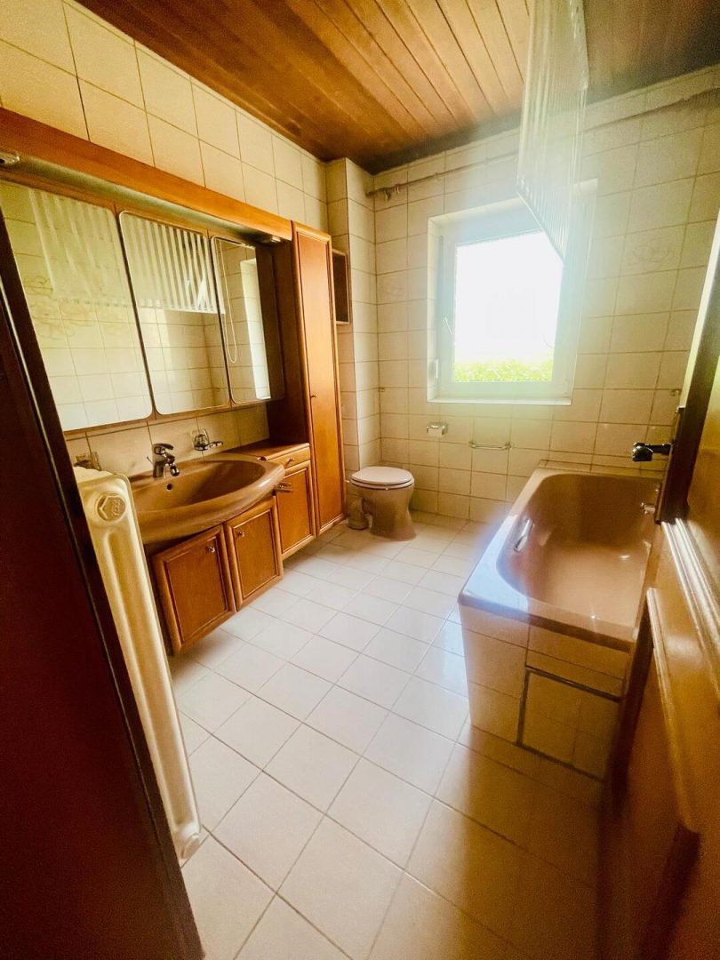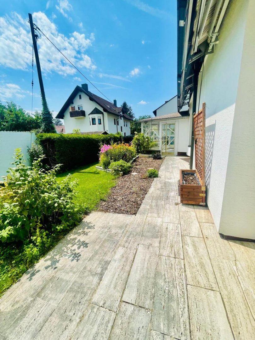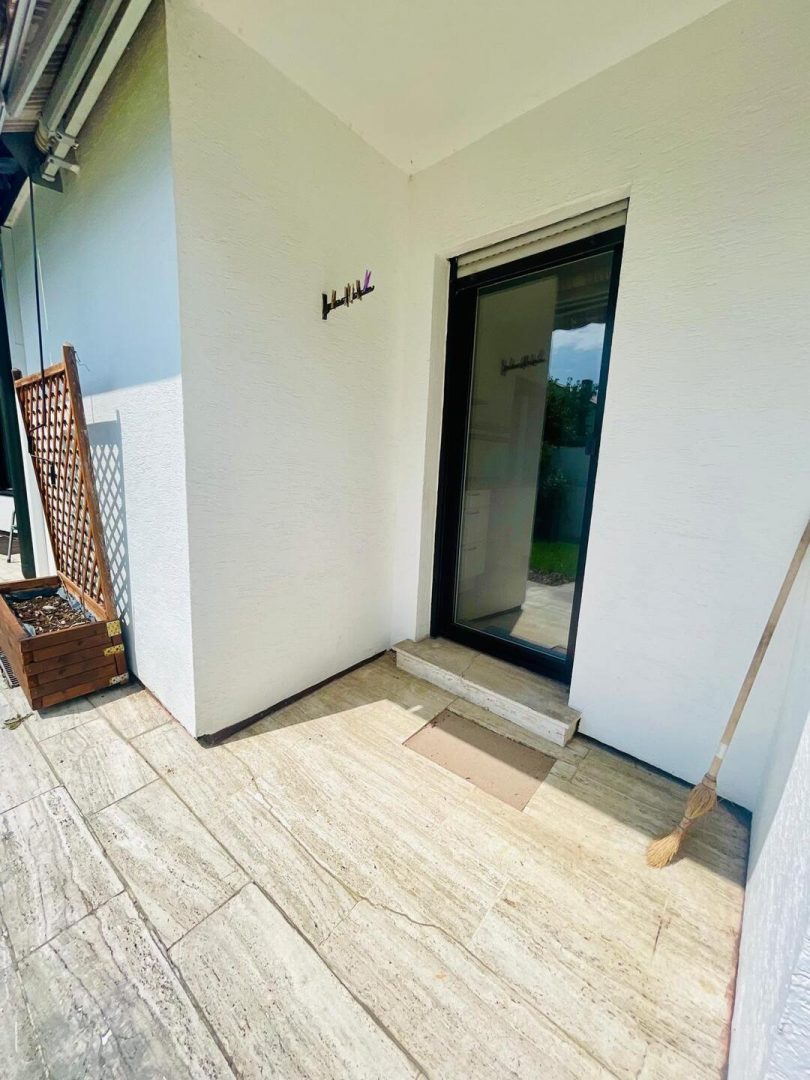 Große Terrasse: Die ca. 30 qm große Terrasse ist sowohl vom Wohnzimmer als auch von der Küche aus zugänglich. Sie wird im September 2024 mit hellen Fliesen modernisiert und erweitert und bietet eine sonnige Südseite, ideal zum Entspannen.