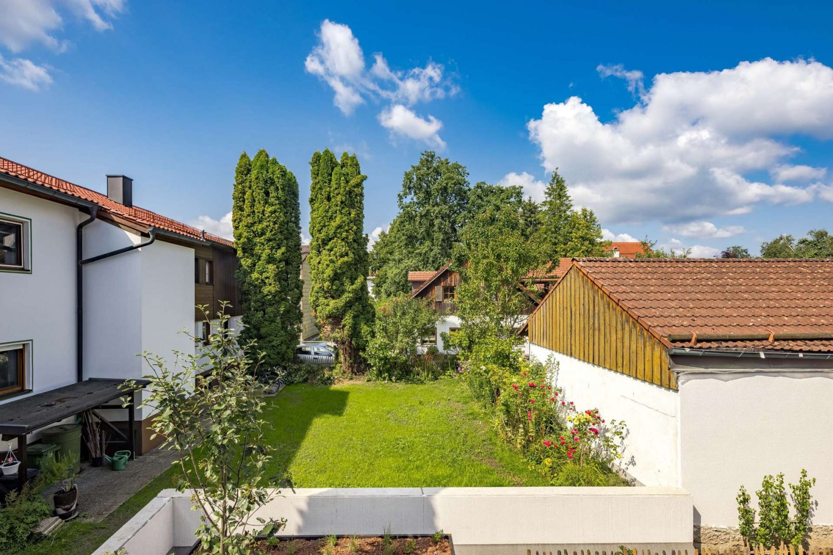 Beim Bau des S'PLATZL wurde besonderer Wert auf nachhaltige Bauweise und ressourcenschonende Materialien gelegt, ohne dabei auf Komfort und Eleganz zu verzichten. Die stilvolle Architektur und exklusive Ausstattung – von hochwertigen Bädern bis hin zu den kunstvoll gestalteten Terrazzo-Entrées – verleihen dem Ensemble seinen besonderen Charakter. Handgefertigte Lampen von Slamp aus Technopolymeren sind nicht nur ein Designhighlight, ihre Überreste werden zudem in Hummelhabitate umgewandelt – ein weiteres Zeichen für das nachhaltige Konzept, das im S`Platzl umgesetzt wurde. Ein modernes Energiekonzept mit regionaler Nahwärme, CO₂-neutrale Ziegel von Schlagmann und die Verwendung von recyceltem Beton setzen Maßstäbe in puncto Umweltfreundlichkeit. Die liebevoll gestaltete, naturnahe Gartenanlage mit Obstspalieren, Beerensträuchern und einem Bauerngarten, der summende Wildbienen anzieht, fügt sich nahtlos in das ganzheitliche Konzept ein. Das S'PLATZL vereint Tradition und Innovation und bietet ein Wohnerlebnis, das zukunftsorientiert und nachhaltig ist.